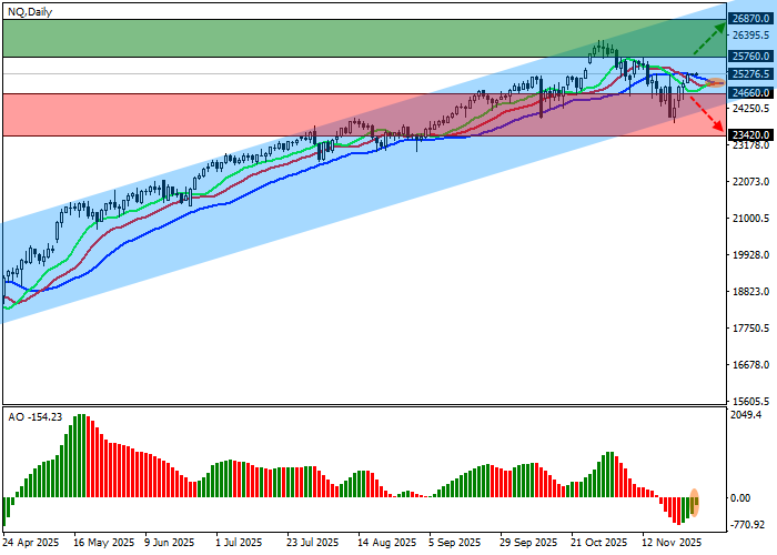 NQ 100, einer der führenden US-Indizes, wird derzeit bei 25276.0 gehandelt: Die Aktieninstrumente setzen ihren Korrekturtrend fort, der durch den erfolgreichen Bericht des Grafikprozessorherstellers Nvidia Corp. unterstützt wurde. Dennoch konnte der Vermögenswert seine verlorenen Positionen noch nicht wiederherstellen: Alphabet Inc. berichtete über die Entwicklung der eigenen Chips mit künstlicher Intelligenz (KI) und diese News sorgten für den Druck auf das Tempo der Verkäufe der Aktien von Nvidia Corp.