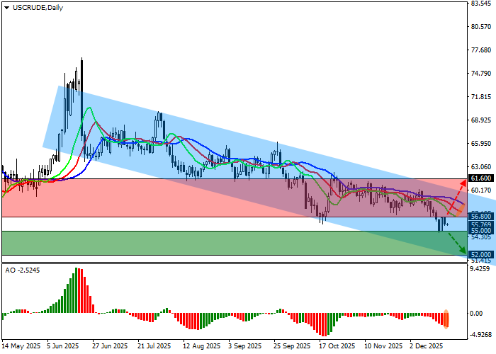 Die technischen Indikatoren sind noch nicht bereit für eine Umkehr und halten ein stabiles Verkaufssignal aufrecht: Die schnellen EMAs auf dem Alligator-Indikator liegen deutlich unter der Signallinie, und das AO-Histogramm bildet neue Korrekturbalken und hält sich weit von der Übergansstufe entfernt.