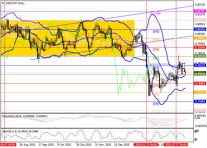 Letzte Woche, als die militärischen Auseinandersetzungen zwischen den USA und dem Iran begannen, erreichte das Devisenpaar USD/CHF ein Sechs-Wochen-Hoch bei 0.7878. Später aber verlor es einen Großteil seiner gewonnenen Positionen: Derzeit steht der Dollar aufgrund der US-makroökonomischen Daten und der Signale für ein baldiges Ende der Operation im Nahen Osten unter Druck.